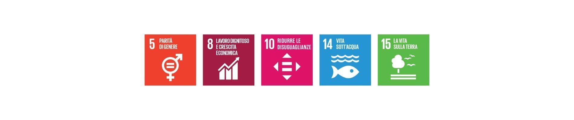 Every journey starts with choosing a destination: ours is a better future, it is change, more responsible and conscious. Our compass is the SDGs created by the UN Protocol for Sustainable Development, among which we have identified 5 goals to which we will commit ourselves in the coming years: gender equality, decent work and economic growth, reduced inequalities, life below water, life on land.